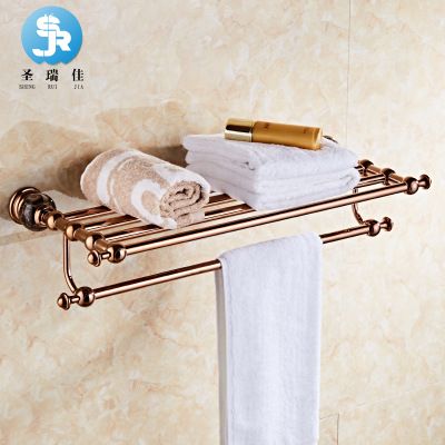 歐式不銹鋼浴巾置物架衛(wèi)生間浴室掛件套裝衛(wèi)浴五金玉石金色毛巾架 |