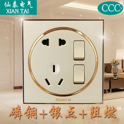 二開五孔雙控 仙泰暗裝墻壁插座 香檳二位開關帶二三級插座 |