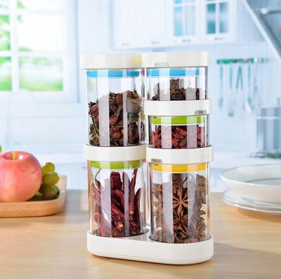 彩虹旋轉調味罐套裝 密封調味罐 干貨儲物罐 廚房收納