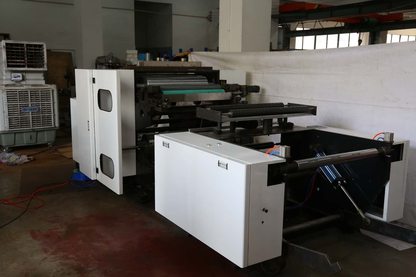 1、“上走料”結(jié)構(gòu)降低了版輥和網(wǎng)紋輥的位置從而降低了整個(gè)印刷組的重心,設(shè)備運(yùn)行更加平穩(wěn),徹底克服了地面灰塵、飛墨、漏墨等對(duì)印品的污染;