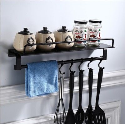 免打孔黑色浴室雙層置物架 太空鋁多功能廚衛雙用雙層長方置物架