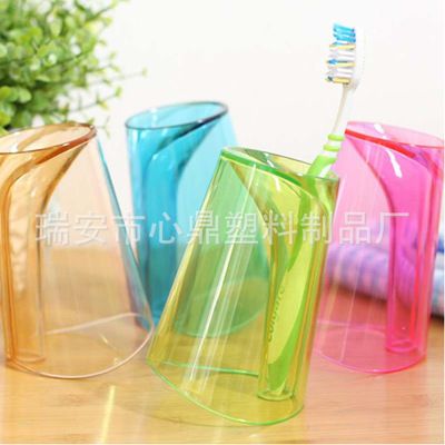 創意二合一防垢洗漱杯刷牙杯帶牙刷架廣告水杯漱口杯多色透明杯子
