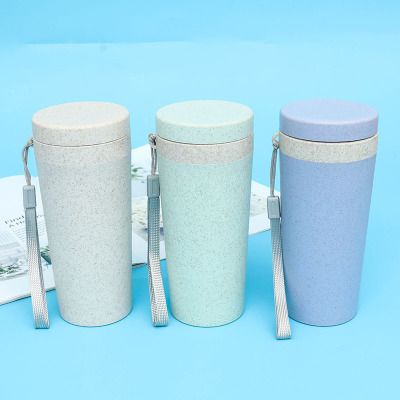 環保小麥秸稈雙層塑料水杯居家旅行隨行杯