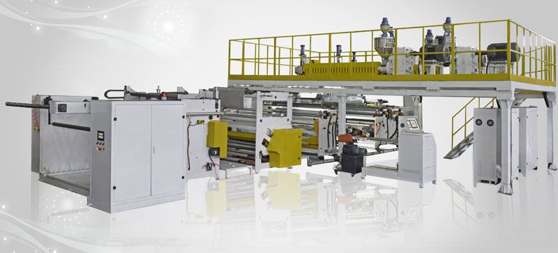 共擠ABA氣泡膜包裝機由主擠出系統、成型系統、收卷系統和電控系統組成。主擠出系統通過3個單螺桿分別控制PE層、PP層和氣泡層。每層可分別控制厚度和流量,確保更好的產品質量。