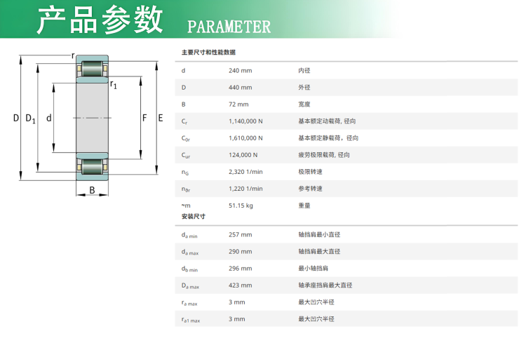 安徽捷越倉庫發(fā)貨實(shí)拍 NU248E-TB-M1軸承數(shù)據(jù) d內(nèi)徑(mm): 240 D外徑(mm): 440 B寬度(mm): 72