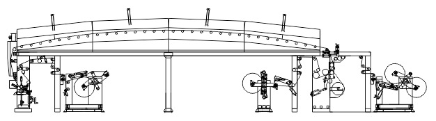 產品用途: 該機適用于BOPP、PET、PVC、PE、鋁箔、紙張等卷狀薄膜材料兩層多次復合,生產高強度,高保鮮、耐蒸煮等高品質包裝材料。產品特點: 1、整機PLC可編程控制器控制,運行穩定、可靠。2、人機界面,10.4寸液晶觸摸屏。 3、進口矢量九電機同步控制。 4、網紋輥帶刮刀之涂布方式(備有多種涂布量的網紋輥供選擇)。 5、放卷翻轉雙工位機構,EPC自動糾偏系統,自動裁切裝置可實現不停機接換卷。 (復合之前另設置有單工位鋁箔專用放料架) 6、收卷翻轉雙工位機構,預驅動功能,自動裁切裝置可實現不停機換卷。 7、移動式刮刀,氣動背壓裝置。 8、四段獨立烘箱結構,封閉循環式烘箱及獨立加熱送風系統,自動恒控制。 9、氣頂式烘箱及穿膜操作平臺,烘箱內導輥主動同步運轉。 10、復合基材預熱裝置,復合成品水冷卻裝置。 11、氣脹式收放卷軸。 12、復合采用三輥壓合方式,壓力更均勻,復合更牢固。 穿膜圖: ![]() 技術參數: