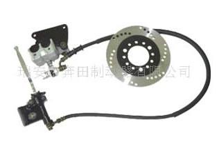 型號:BT2G7 工作壓力:6.9Mpa 制動泵缸徑:φ12.7mm 制動鉗缸徑:2 x φ25mm 安裝位置:前剎右側 安裝板孔距:84mm 油管長度:1000mm 理論制動力矩:406N.m 外徑:φ180mm 內徑:φ58mm 厚度:4mm 安裝參數:孔距φ80mm 孔徑φ10.5mm 底面平行高度:4mm 制動有效半徑:75mm |