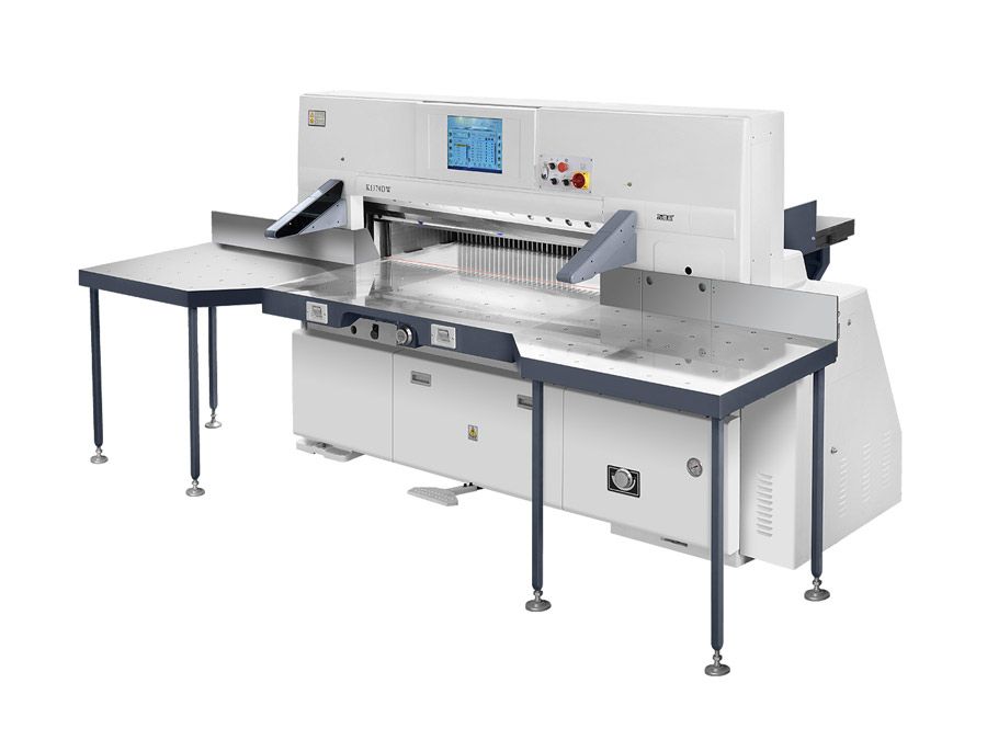 鑄件采用先進的樹脂砂造型,內部結構清晰,排號達到國際標準HT250,更有效的增長運動部位摩擦壽命。 顯示屏采用臺灣AU15英寸彩色液晶觸摸顯示屏。 電腦的操作界面采用人性化的設計,使操作人員易操作。 送紙馬達驅動采伺服系統,實現一次性定位精度為±0.01mm. 全機的主要低壓控制部分采用進口施耐德的電器。 液壓部分壓力可調。 機架采用國際流行的分體式結構,有效提升了機器的裁切精度,方便用戶的維護工作。 鍍鉻的工作平臺,節省了用戶的維護時間,延長了其使用壽命。 工作平臺還備有吹氣結構,方便推紙及送紙。 配有高可靠的8組的光柵保護,確保了操作者的人身安全。 掛鉤式的裝刀結構,使換刀工作簡單易行。 高精度、高剛度框型送紙機構,配線性雙導軌,確保了送紙精度。 蝸輪蝸桿傳動機構,液壓離合、機械制動;
