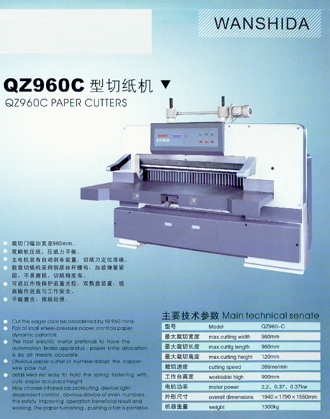 主營:液壓數顯切紙機;平壓壓痕切線機;全張切紙機;電腦橫切機;