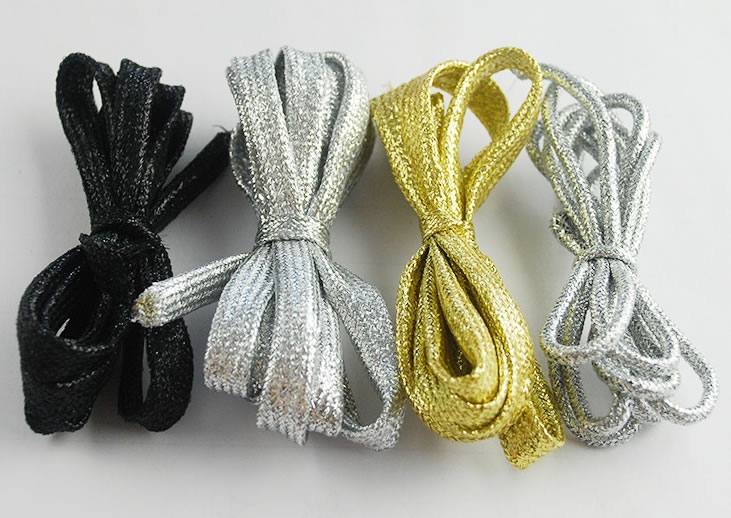廠家直銷供應滌綸織帶時尚流行 多色潮人百搭金銀絲鞋帶批發