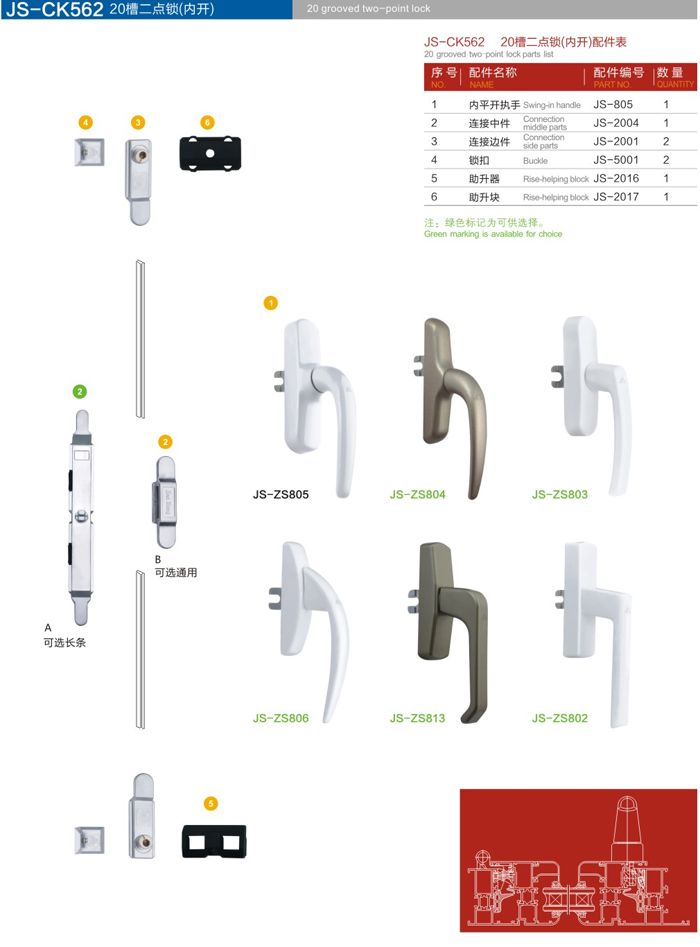 20槽鋁條式兩點鎖(內開) 門窗五金 門窗配件
