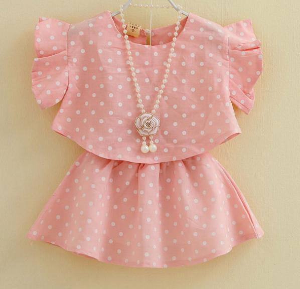 韓國童裝2014夏季新款女童可愛波點飛袖襯衫+波點短裙