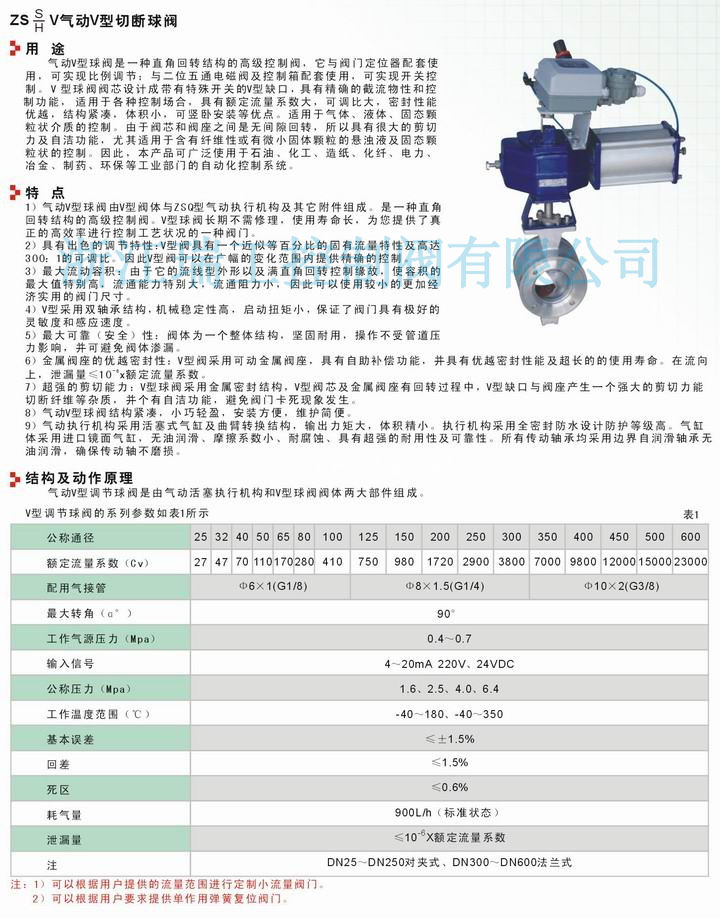 ZSHV氣動V型球閥