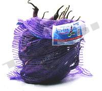 產品名稱:P.E. KNITTED BAGS 最小訂貨量:一個20尺的小柜 產品說明:針織網眼袋規格:50X65CM,27G紫色,帶小標簽,蘭帶打結。網眼袋以聚乙烯為原料,防紫外線,適用于超市裝水果、蔬菜等。可裝20KG的重量。 外包裝信息:2000或者3000條壓縮成包,用透明或白色塑料布包起來,然后用塑料繩子捆起來。 3000條打包尺寸為:35.5X50X34CM |