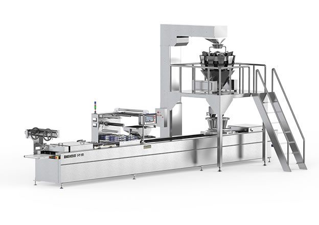 該設備是我公司基于BD-420L/520L拉伸膜真空包裝機基礎上升級的,該機可實現(xiàn)自動下料,稱重、真空熱封、切割,無需人工。 |