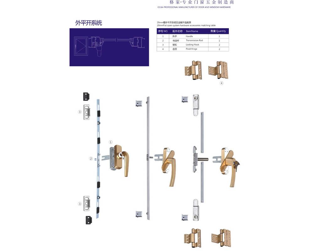 主營:內開內倒;內平開二點鎖;門鎖;鉸鏈;月牙鎖;傳動閉鎖